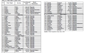C. BENUA AFRIKABenua Afrika terbagi menjadi beberapa kawasan, yaitu Afrika Selatan, Afrika Tengah, Afrika Barat, Afrika Timur.Keadaan Benua Afrika:1) Letak Astronomis : 38 º LS – 35 º LU dan antara 17 º BB – 51 º BT2) Letak Geografis : terletak antara Samudera Atlantik dan Samudera Hindia3) Batas :Sebelah utara : Laut Tengah, Terusan Suez, dan Laut MerahSebelah Timur : Samudera HindiaSebelah Barat dan selatan : Samudera Atlantik4) Bentang alamBentang alam Benua Afrika dibedakan menjadi empat, yaitu dataran tinggi, lembah retak besar, lembah sungai, dan daerah gurun.a) Dataran tinggiDataran tinggi di Afrika terdiri dari :Plalto Afrika Selatan (Afrika Atas) meliputi : Plato Ethiopia dan Plato Danau Tengah (di tengahnya terdapat Danau Victoria)Plato Afrika Barat dan Utara (Afrika Bawah) meliputi : Plato Fuota Djallon, Plato Jos, dan Plato Tassalin Ajerb) Lembah retak besar (Great Rift Valley, terletak)Di lembah ini terdapat rangkaian gunung berapi dan danau-danauGunung yang terkenal antara lain Gunung Kilimanjaro (5.895 m), Gunung Kenya (5.195 m), gunung Ruwensori (5.109 m), dan gunung Elgon (4.321 m)Danau-danau yang terkenal antara lain Danau Victoria, Danau Tanganyika, Danau Malawi, Danau Turkanac) Lembah sungaiLembah sungai terbesar adalah lembah sungai Nil, Lembah Sungai Kongo, Lembah Sungai Niger, Lembah Sungai Oranye.d) Daerah gurunTiga gurun utama di Afrika yaitu Gurun Sahara, Gurun Kalahari, dan Gurun Namib.5) IklimIklim di wilayah Afrika terdiri dari :· Iklim gurun yang memiliki cirri kelembaban udara sangat rendah, curah hujan sedikit. Iklim ini terdapat di Afrika bagian utara· Iklim mediterania yang memiliki ciri kering pada musim panas dan dingin pada musim hujan. Iklijm ini terdapat di Afrika Selatan, Aljazair, dan Maroko.· Iklim sedang yang hangat memilki cirri pada musim panas terjadi hujan, pada musim dingin udara kering. Iklim ini terdapat di Afrika bagian Tenggara· Iklim tropis yang memiliki ciri seperti iklim mediterania, tetapi udara tidak kering pada musim dingin. Iklim ini terdapat di afrika bagian selatan· Iklim tropis basah meiliki ciri suhu udara rata-rata dengan kelembaban udara yang tinggi. Iklim ini terdapat di Uganda, Zaire, dan Kenya.6) Keadaan PendudukRas Penduduk :Secara umum penduduk di benua Afrika dikelompokkkan menjadi beberapa ras yaitu :Ras Negro, yang terbagi menjadi dua bagian yaitu Negro Sudan (tinggal di Afrika bagian barat) dan Negro Bantu (tinggal di afrika sebelah timur dan selatan)Ras Hamit dan Semit (Kulit Putih), banyak tinggal di sebelah utara Gurun SaharaRas Kulit Putih Eropa, banyak tinggal di Afrika sebelah selatanAgama yang dianut:Agama yang dianut penduduk Afrika antara lain Islam (di wilayah Mesir, Libya, Tunisia, Sudan, dan Somalia), Kristen dan Katolik (di wilayah Uganda, Liberia, Guinea, Ethiopia, dan Tanzania), dan Kepercayaan setempat7) Mata PencaharianPenduduk Afrika bermata pencaharian pada pertanian, pertambangan, imndustri, kehutanan, dan perikanan8) Negara-negara di Afrika: